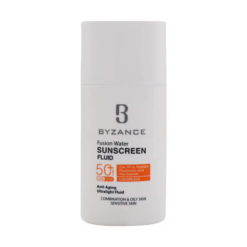 فلوئید ضد آفتاب بیزانس فیوژن واتر پوست چرب و مختلط بی رنگ 50 میل