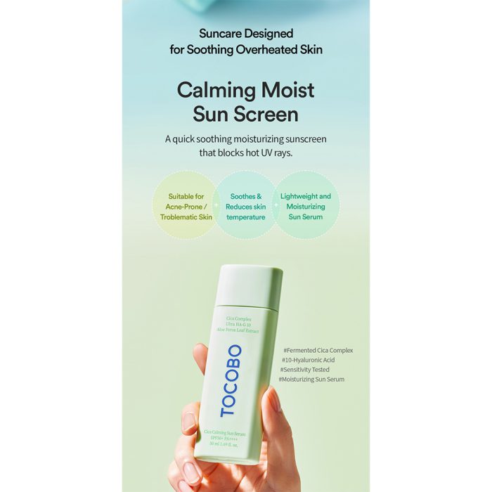 سرم ضدآفتاب خنک کننده سیکا کالمینگ توکوبو، با بهرهگیری از عصاره سنتلا آسیاتیکا، به پوست شما آرامش میبخشد و التهابات را تسکین میدهد. این محصول با داشتن 10 نوع هیالورونیک اسید، پوست را عمیقا آبرسانی میکند و آن را نرم و لطیف میسازد. این سرم ضد آفتاب گیاهی علاوه بر خاصیت خنک کنندگی، دارای ترکیبات التیام بخش نیز میباشد که التهابات پوست را تسکین میدهد.