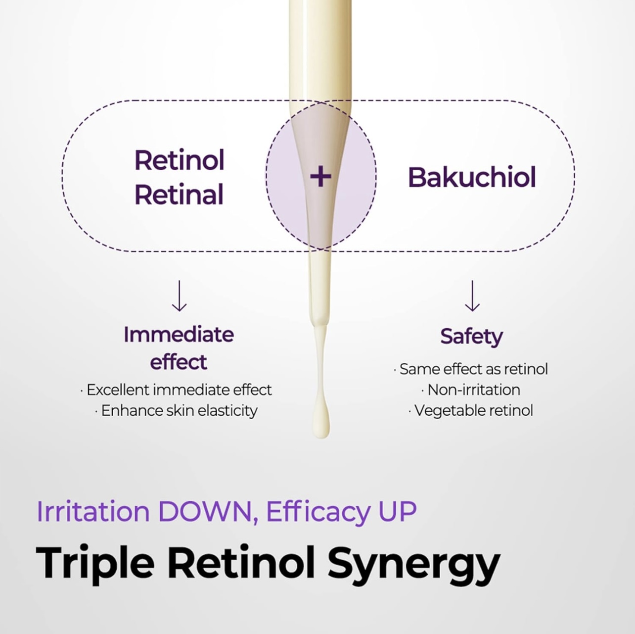 باکوچیول، یک ترکیب نسل بعدی، به عنوان جایگزینی طبیعی و بسیار ملایم برای رتینول عمل می کند. این مجموعه با حضور پپتیدها و کلاژن، توانایی ضدپیری متمرکزی را برای پوستی سفت و بی عیب فراهم می کند.