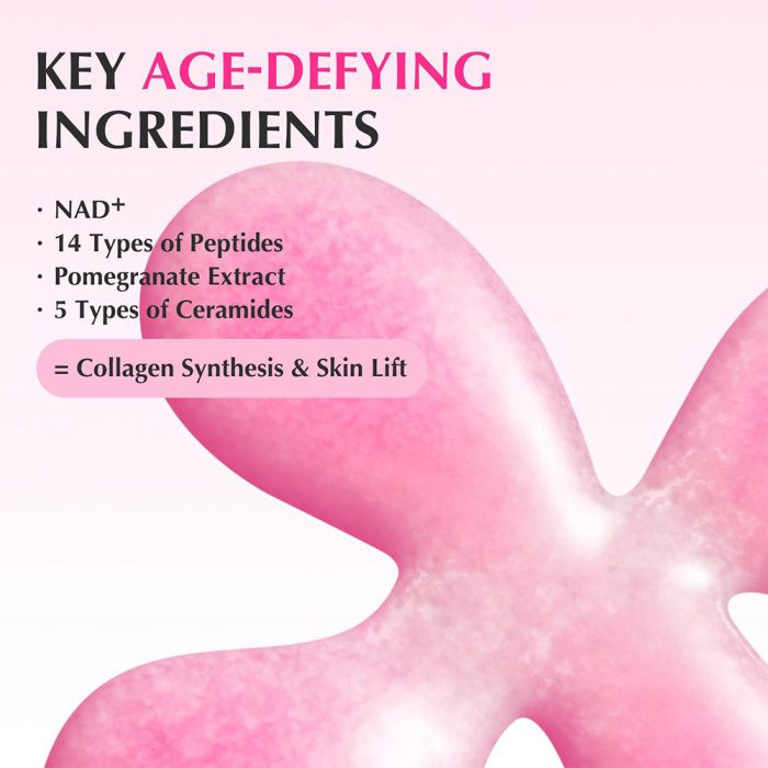 کلاژن گیاهی، پوست را حجیم و به طور قابل مشاهدهای لیفت میکند، در حالی که ۵ سرامید، سپر محافظ را بازیابی کرده و رطوبت عمیق و مقاومت در برابر خشکی را حفظ میکنند.