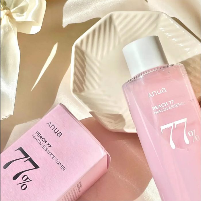 تونر اسنس هلو و نیاسینامید آنوا Anua – Peach 77 Niacin Essence Toner یک تونر آبرسان و روشن کننده است که با 77% عصاره ی هلو فرموله شده است. این تونر به طور خاص برای بهبود بافت پوست و ایجاد پایه ای صاف و درخشان برای آرایش طراحی شده است. عصاره ی هلو به دلیل داشتن آنتی اکسیدان های قوی، به محافظت از پوست در برابر آسیب های محیطی کمک می کند و پوست را نرم و لطیف نگه می دارد. این تونر سلول های مرده پوست را لایه برداری می کند و منافذ را پاک می کند.